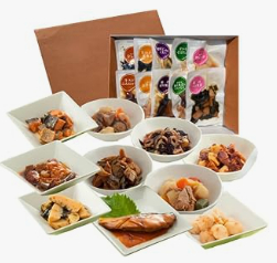 肉・魚介・野菜類をみりん・砂糖・醤油・出し汁などで甘辛く煮つけた料理。